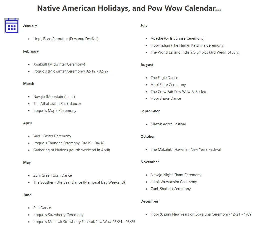 Native Americans have many major holidays, festivals and traditions that they celebrate every year as part of their cultural and spiritual beliefs...nativeamericanloveforever.com