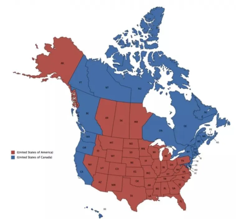 2. My Christian Anarchist and Libertarian friends posted a map of organizing the US as Five Regional districts connecting neighboring states.