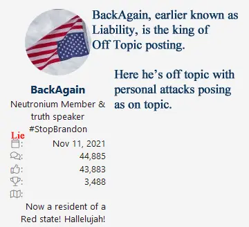 So, I settle for exposing his endless lies and trollish behavior. And I do try to force it to get itself back on topic. But that rule doesn’t seem to apply much to it.