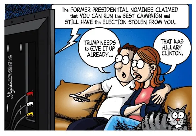 So the point of this cartoon is that Trump is copying Hillary Clinton? Is that right?