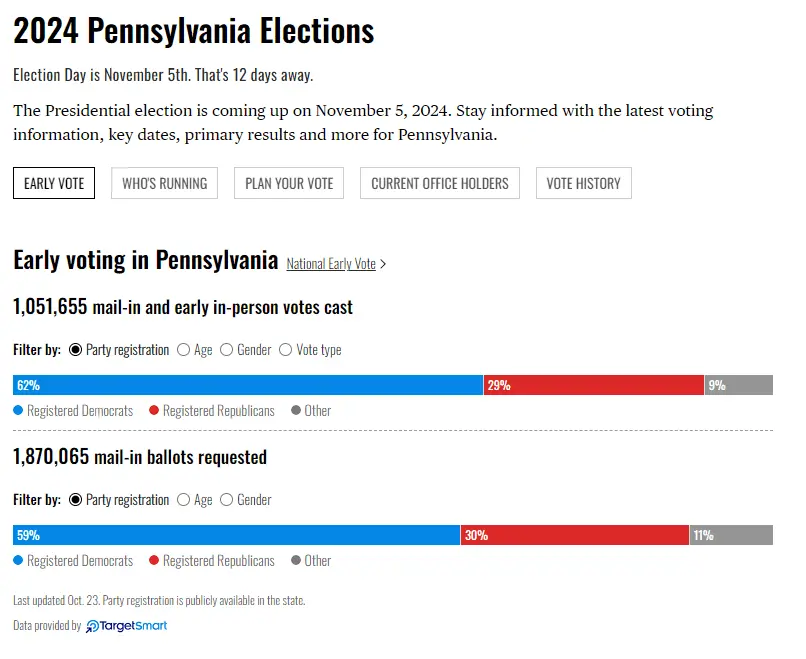 Republicans are voting early in the other battleground states. They are not voting early in PA. --