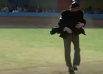 In the movie Nielsens character is an ump and dances in between calls and strike outs, entertaining the crowd. When I was a kid I thought "this would be a great idea for baseball"