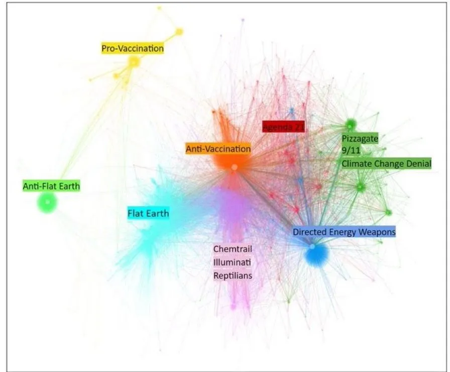 In recent years, conspiracy theories have pervaded mainstream discourse. Social media, in particular, reinforce their visibility and propagation. However, most prior studies on the dissemination of conspiracy theories in digital environments have focused on individual cases or conspiracy theories as a generic phenomenon. Our research addresses this gap by comparing the 10 most prominent conspiracy theories on Twitter, the communities supporting them, and their main propagators. Drawing on a dataset of 106,807 tweets published over 6 weeks from 2018 to 2019, we combine large-scale network analysis and in-depth qualitative analysis of user profiles. Our findings illustrate which conspiracy theories are prevalent on Twitter, and how different conspiracy theories are separated or interconnected within communities.
