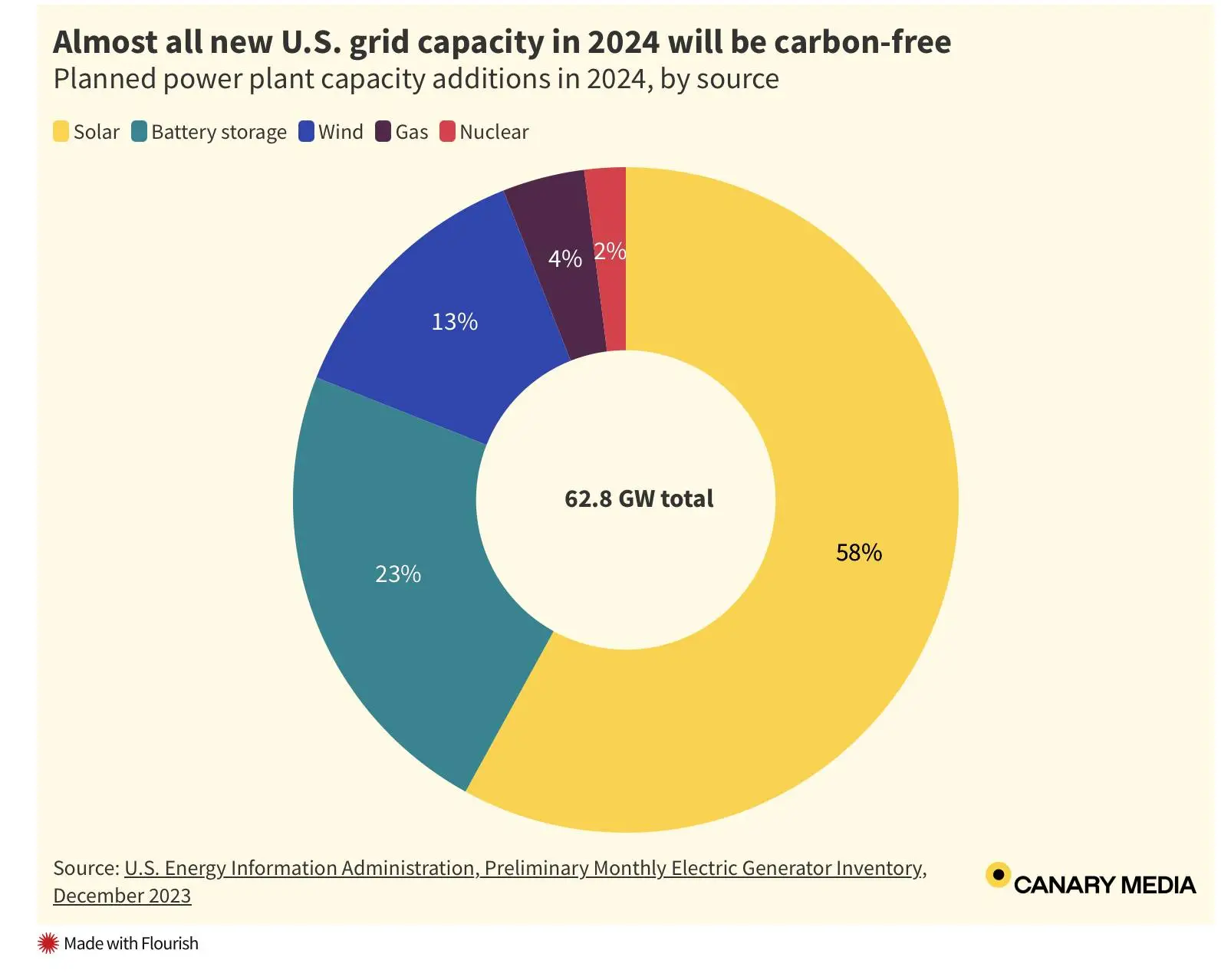 Renewables, batteries and nuclear will add up to 96% of all new power capacity constructed this year, per federal data.www.canarymedia.com