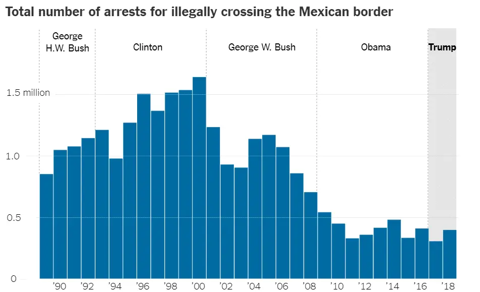 Not as many as you think. The border patrol released estimates of that up until, I think, 2016 or so. The percentage of people that make it across has been falling considerably in the same time frame. Mostly because of a massive buildup of border patrol agents starting after 9/11 and continuing through the Obama presidency.