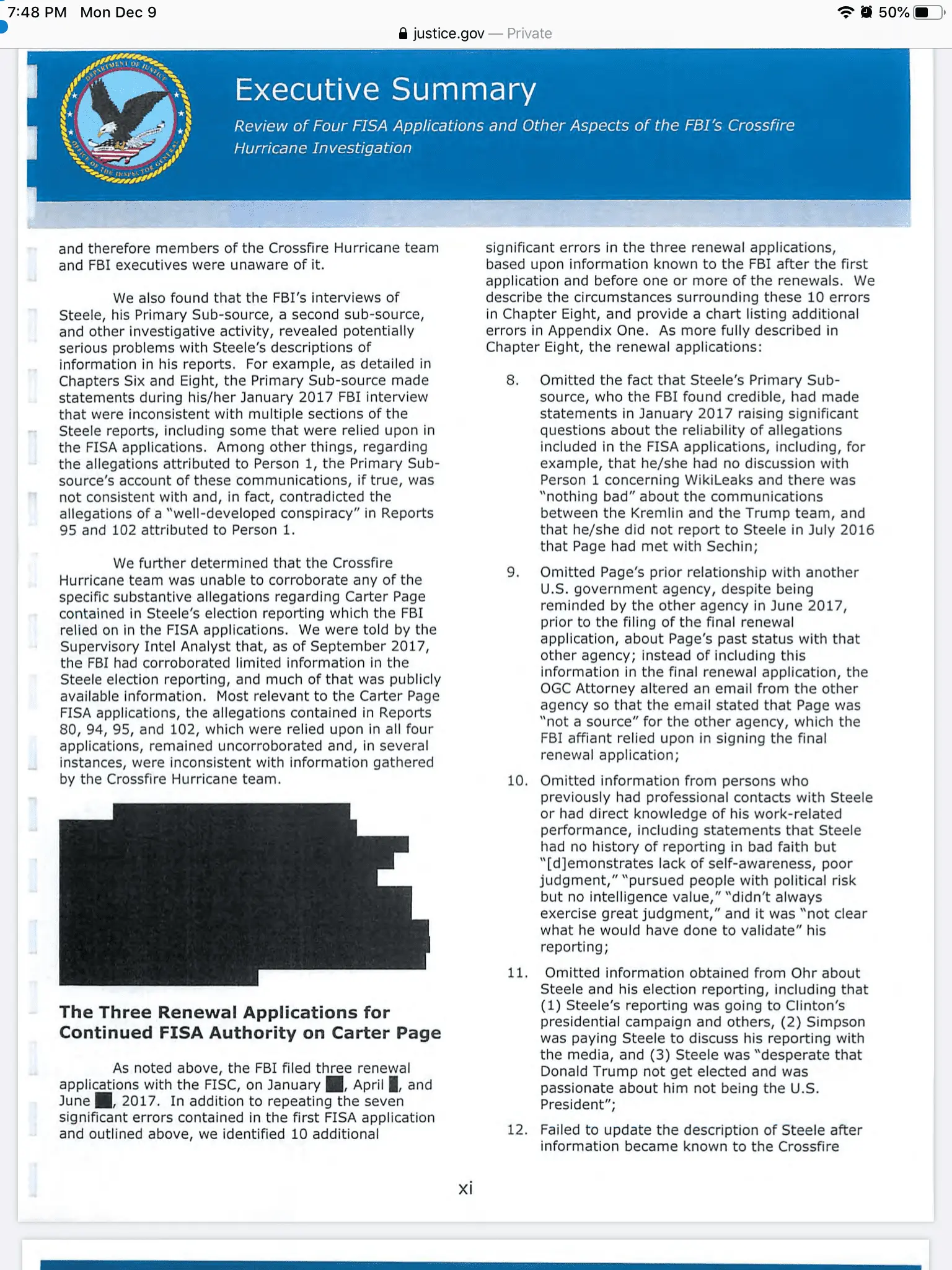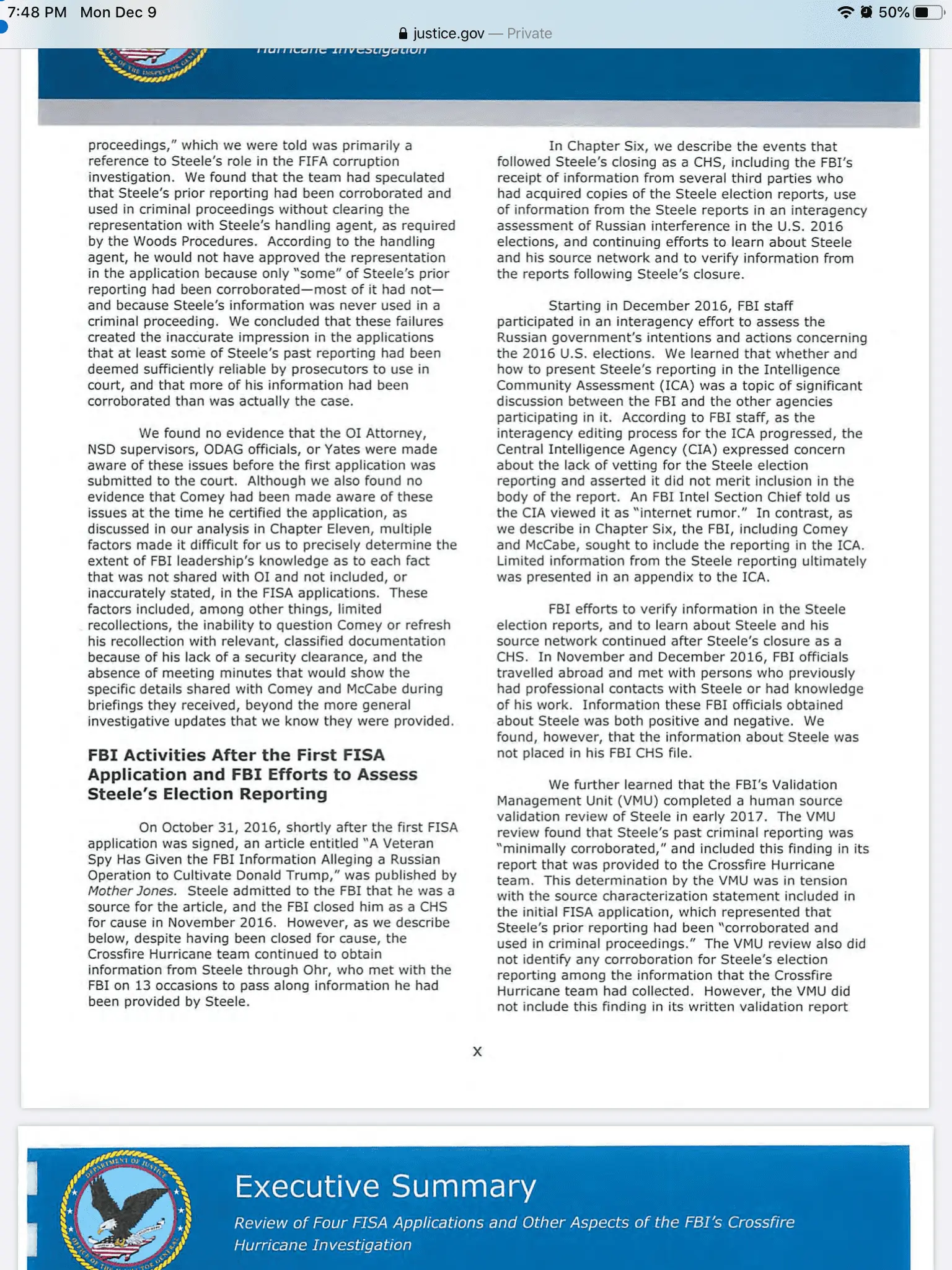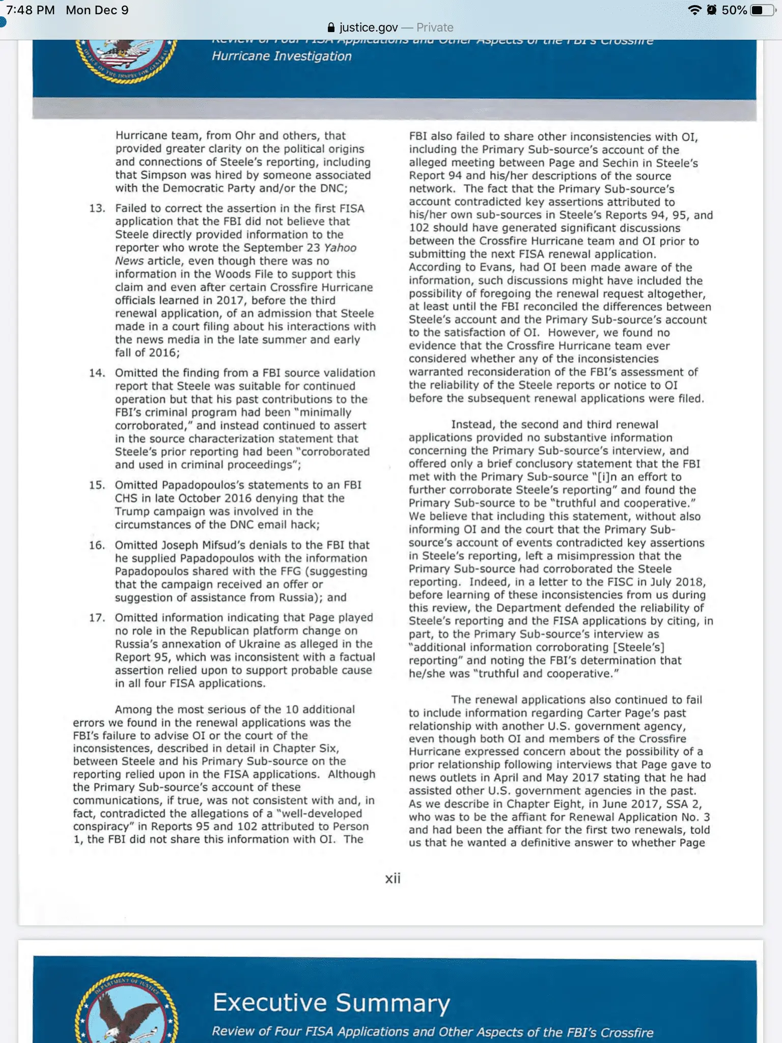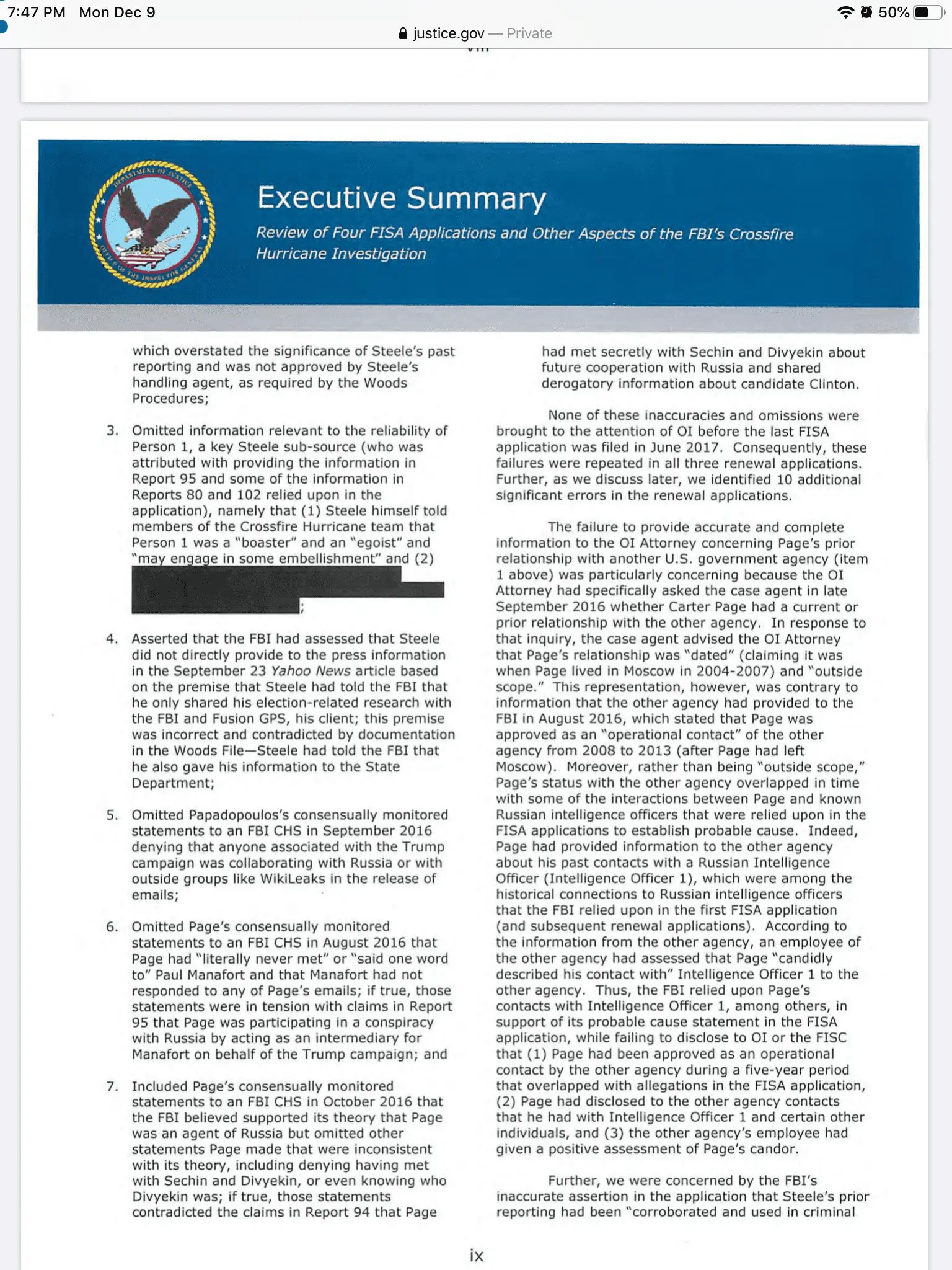 “We did not find documentary or testimonial evidence that political bias or improper motivation influenced the decisions to open the four individual investigations,” the report states, referring to investigations into four people on Trump's campaign: George Papadopoulos, Michael Flynn, Paul Manafort and Page.