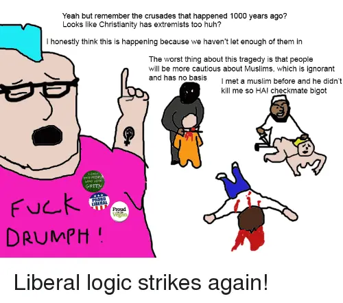 Also as I know the Pro-Islamic Leftist Apologist/Propagandist Crowd who we know who they are (I am thinking how fast Pogo and Bode etc will be in this thread I give it UNDER 15 MINUTES before one of them is in) as I know they will IMMEDIATELY invade this thread with their usual Muh Muslims, Muh Islam, Hate ******, Blame ******, What About The Christians, What About The Crusades, I will get MY response to THEIR thing in FIRST:
