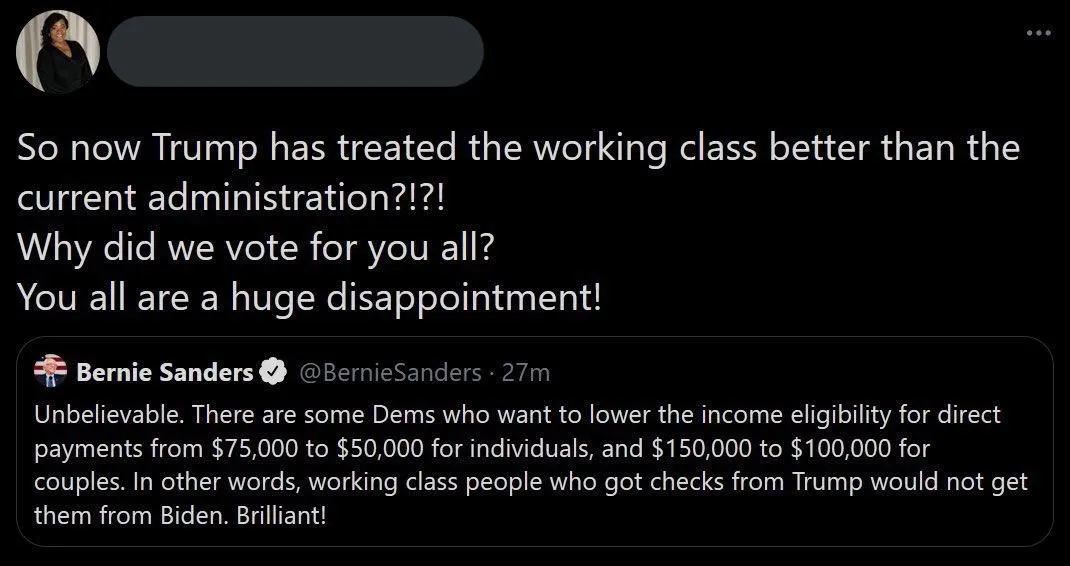 There was record unemployment in 2020...the middle class was hammered under TrumpThat darn China trade war raised prices for all of usBased on what?Trump treated the working class like donkey doo doo