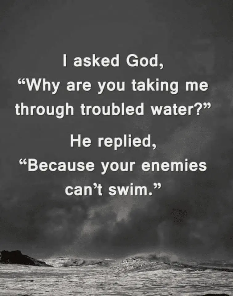 There was still a great apostasy going on then. So, there were few friends of God and the Savior. Suggesting that God threw her into the stream is wrong. God didn't throw her. She was where she should not have been. The storm did that all by itself and she was responsible because she should not have been there. Yet, she blamed God anyways. No, God did say he treated anyone that way. She made that up because she was hiding her mistake.Calls to mind Saint Teresa of Avila (lived in the 1500s). She was traveling through a heavy storm when a bridge gave way and she found herself thrown into a stream. She came up for air and saying, "God, why me?" The voice of God came into her mind saying, "Ah, Teresa--I treat all my friends this way." Teresa said she snapped back, "No wonder you have so few!"