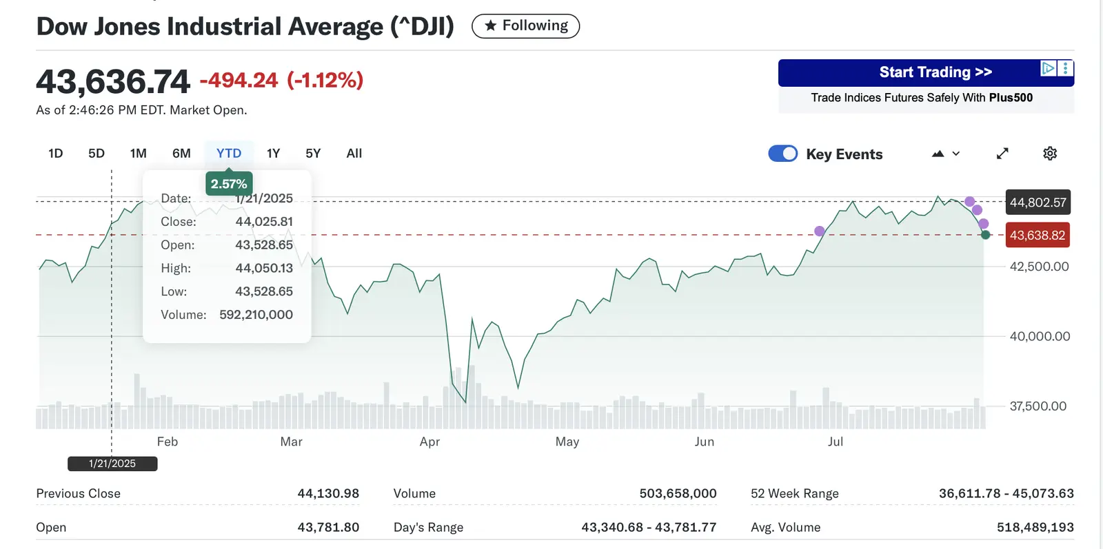 The DOW is LOWER than when trump took office.Notice how these guys always chirp up on the rare down day, but you’d better believe I’m going to crow when it hits 46,000.