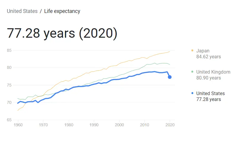 #1 Average Life Expectancy in the US is 77 not 95.