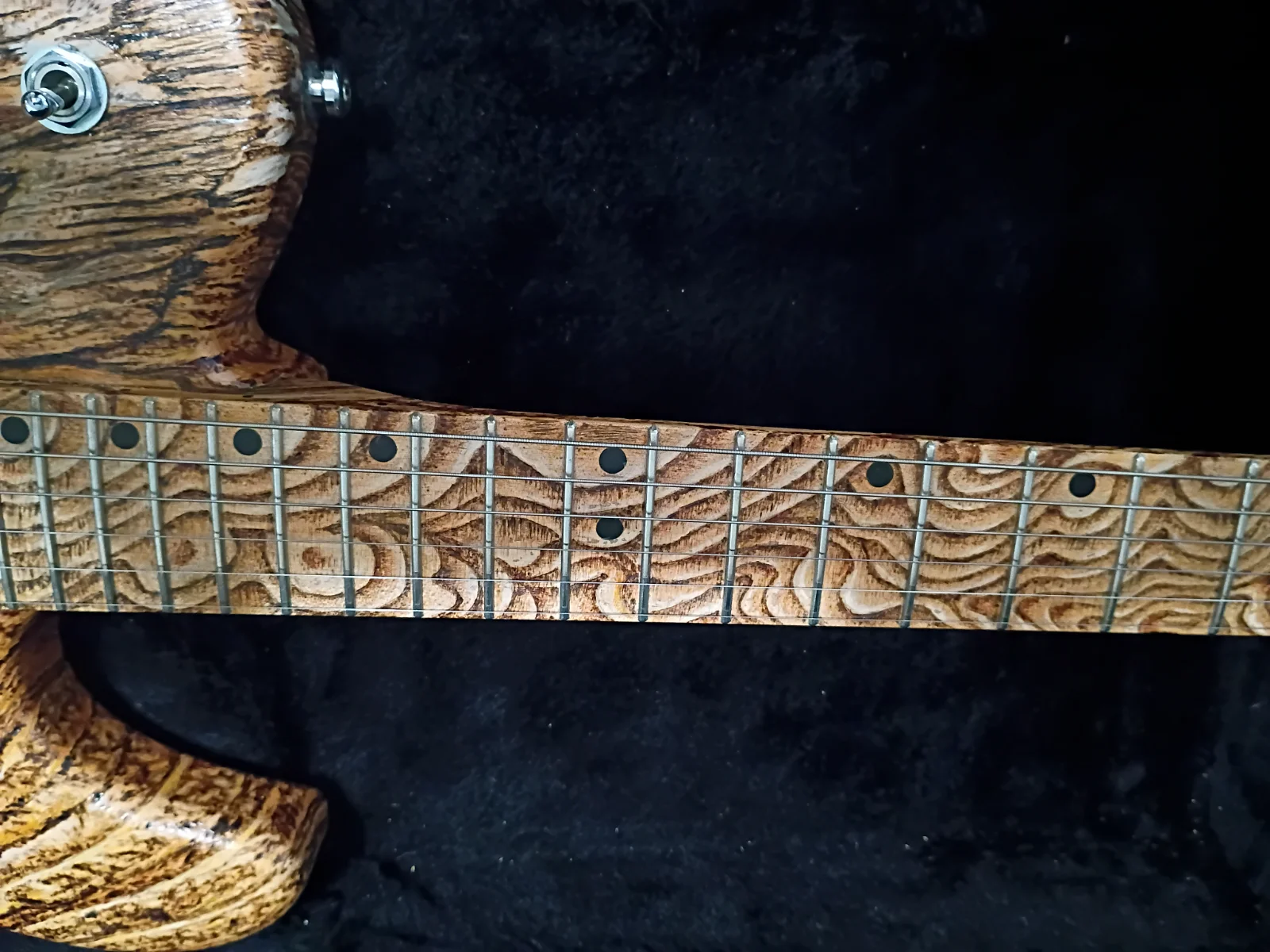 That is laser etched alder, with a rock maple fingerboard.Oh hell no and Oh hell yeah at the same time. The magnets on those pickups just destroyed on of my hopes for a patent idea. And the "Oh Hell Yeah!" wow! what a piece of art!