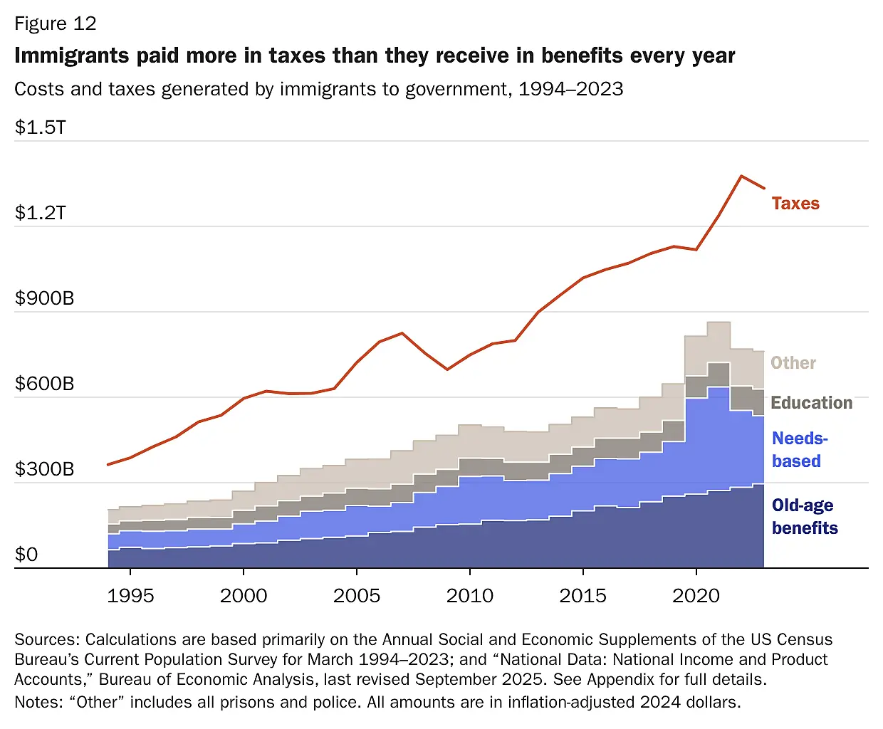 Immigrants, both legal and illegal but not US citizens, pay more in taxes than they receive in benefits from the US government.
