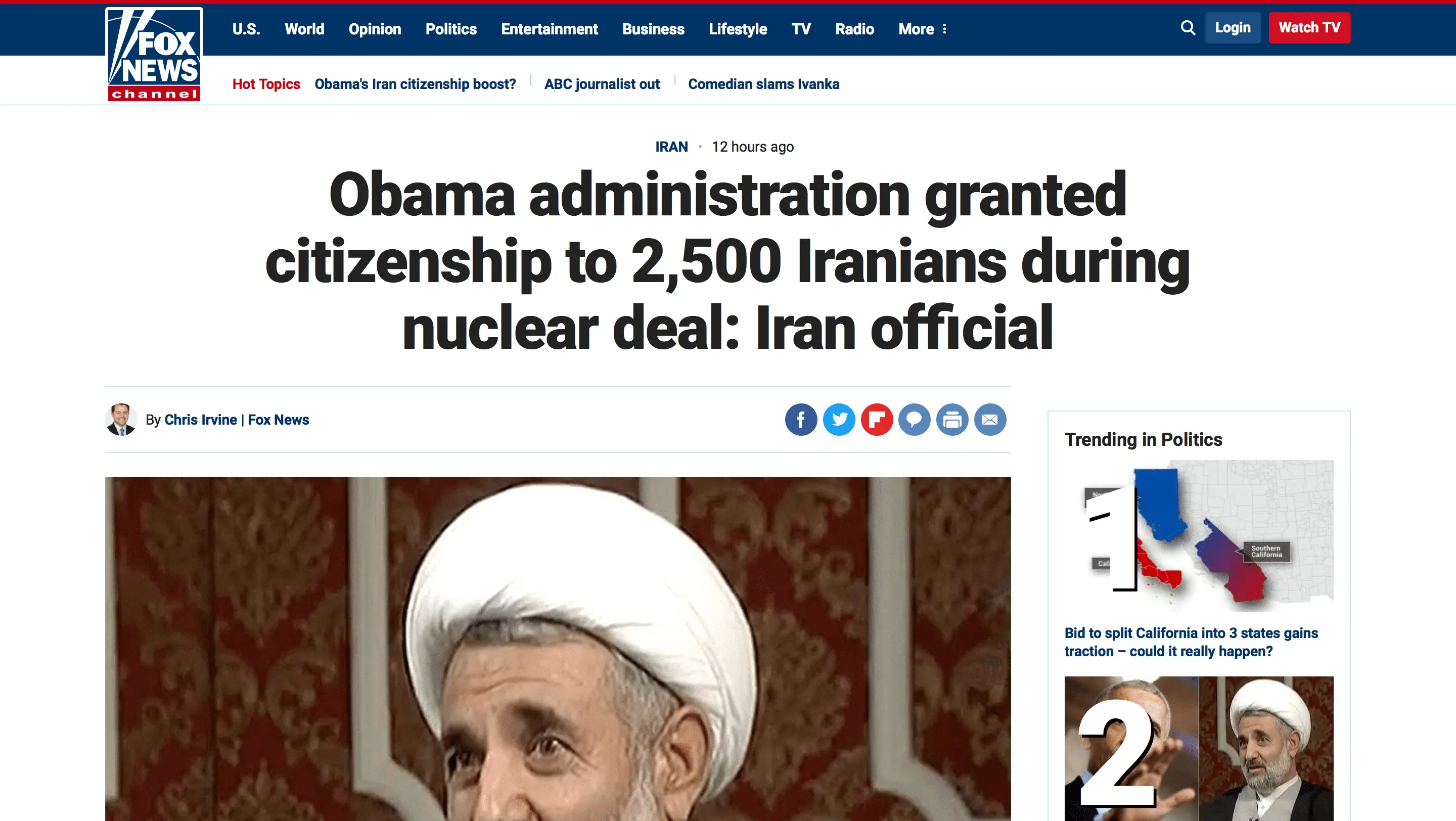 Obama administration granted citizenship to 2,500 Iranians during nuclear deal: Iran official