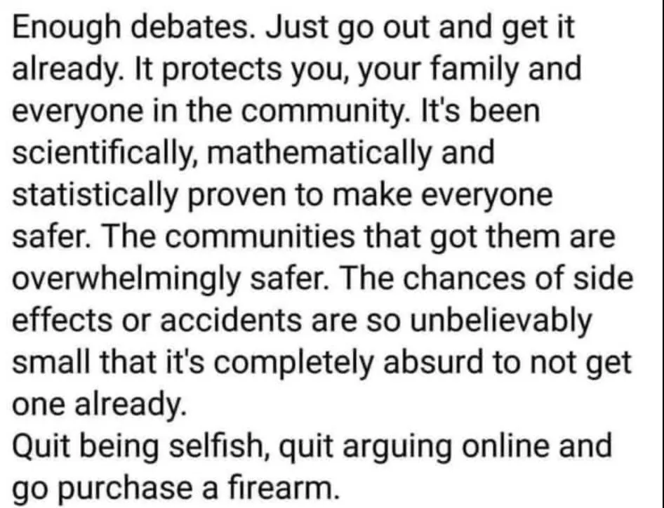 statistics actually show that gun ownership increases the likelihood of you being killed or injured with a firearm.