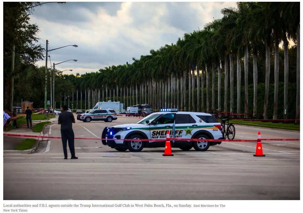 Presidential candidate Mr. Trump himself is a convicted felon and visits the golf courses that bear his name. Some guy named "Ryan Routh," who was shot at when a Secret Service agent says he saw the barrel of a rifle sticking through some bushes and a fence, has been charged with possession of a firearm by a prohibited person (he being a