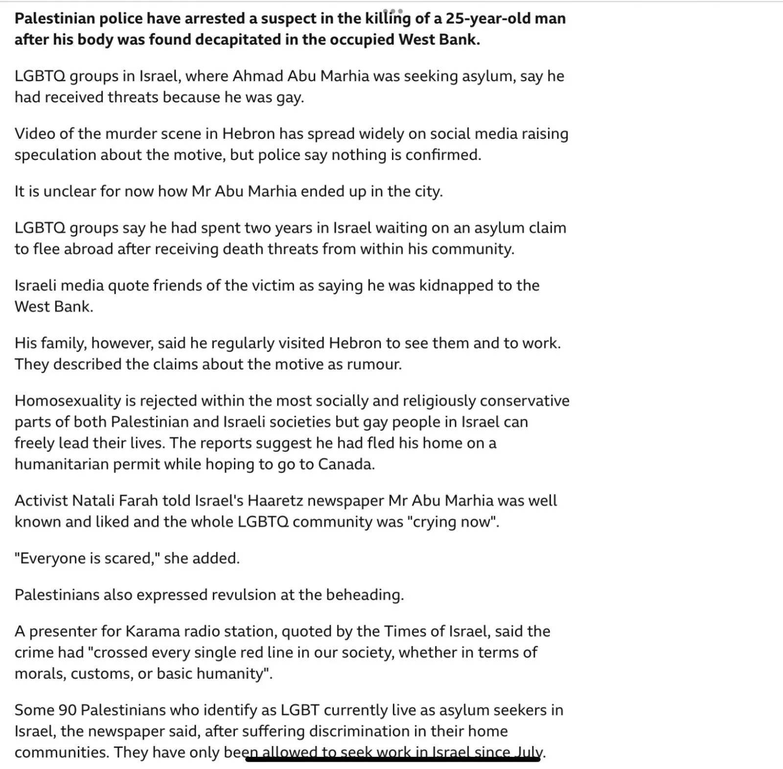 So if the Palestinians arrested the suspect, that means it is a crime to execute homosexuals.