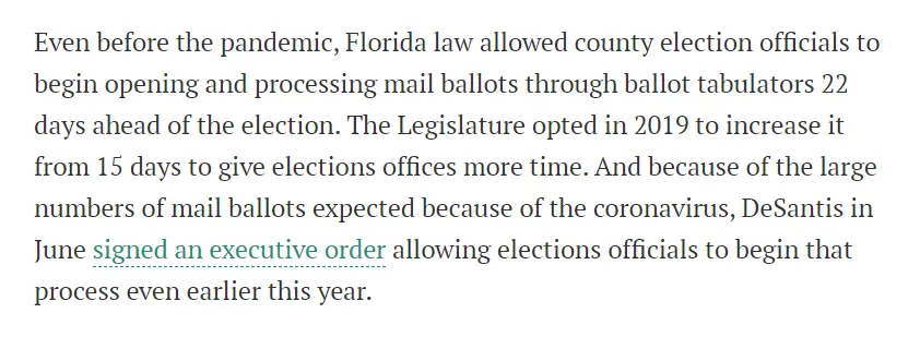 Pennsylvania couldn't start processing mail in votes until election day when they were also processing in-person voting. Florida (on the other hand) had a commensurate number of mail in votes but no problems. Why? Their legislature allowed processing to start when the ballots arrived.