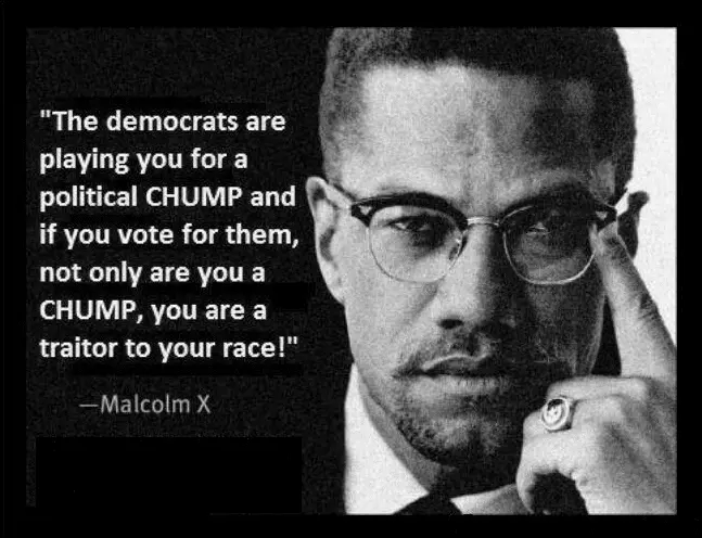 50 years ago, Malcolm X advised blacks not to trust ANY white regardless of political affiliationTrue. It often amazes me that blacks actually believe the democrats‘ bullshit that republicans are racist while it is the Democratic Party that is actually the racist party. However you can’t fool all the blacks all the time.