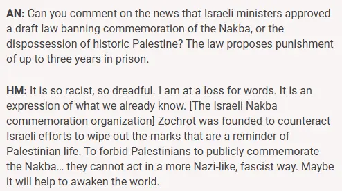 2. "Why does America help Israel kill Palestinians and steal their land?"