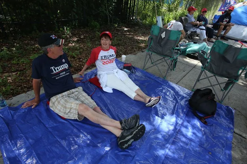 With tents, sleeping bags and coolers of water in tow, Donald Trump supporters began lining up for Tuesday’s campaign rally in Orlando, nearly two full days before the event.