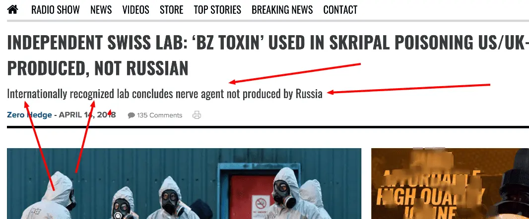 Well those doubts may well have just been answered as according to the independent Swiss state Spiez lab, the substance used on Sergei Skripal was an agent called BZ, which was never produced in Russia, but was in service in the US, UK, and other NATO states.