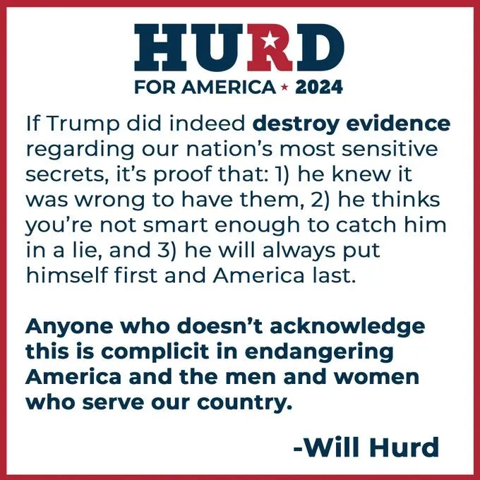 "If you believe this, you might be in a cult!" Who is Will Hurd? A leftist righteous judge? He just projected the Biden Crime Family's world on President Trump who doesn't lie and who doesn't pay to play.
