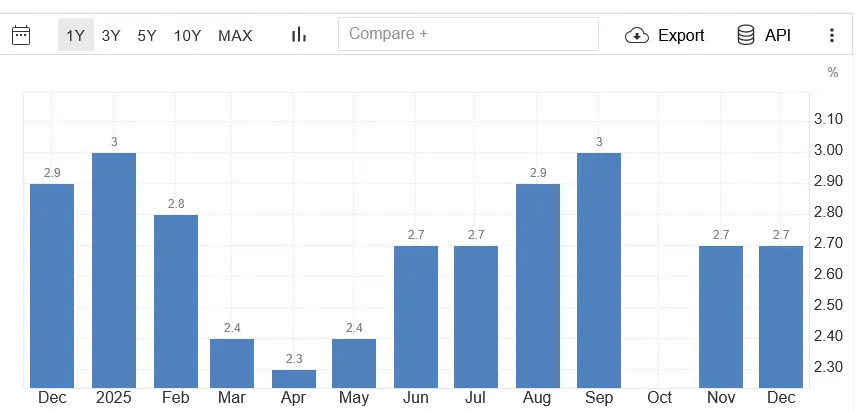 2.7% for December 2025, unchanged from November.