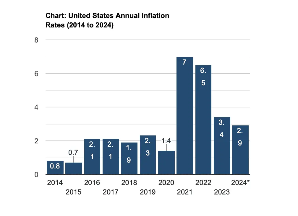 Biden inflation rate: 2021 --7.0% 2022--6.5% 2023--3.4 2024--2.9% ---Average for 4 years: 4.11% a 113% Increases in inflation!