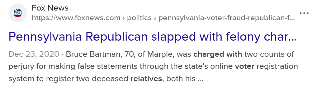 I did try to look up "Trump voters voting twice or more, using dead wives, mothers, etc."