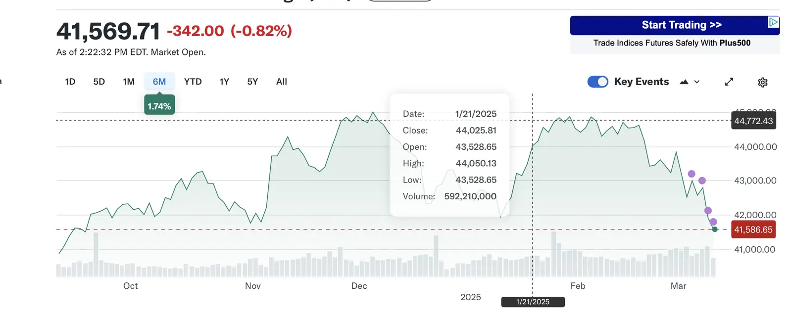 The DOW is down from 44,025 to 41,569 (ended the day at 41,433)