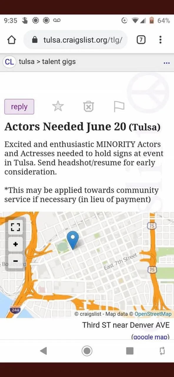 Most likely it's a leftist subversive organization attempting to recruit a rent-a-mob of broke naive youngsters to manipulate them into doing stupid shit like jump out in front of 2000 pound moving objects and scream "orange man bad". Or perhaps protest against justice and peace.All I can say is my sister in Tulsa found it on Craigslist and sent it to me. So, it's a real advert, but is it serious or a red herring or??? I have no other info.Is this for real?