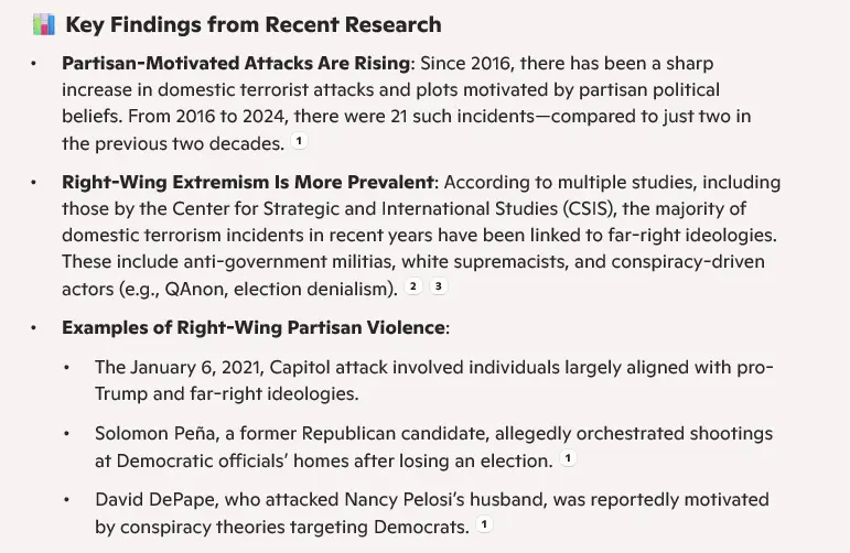 Count them up. The right is more likely to commit an act of domestic terrorism, at least that is what AI says.You are conveniently leaving off the list: