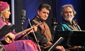 Iran’s great master of Persian classical music, Mohammad-Reza Shajarian, middle, has not been allowed to perform in Iran for a long time. Photograph: Kamran Jebreili/AP
