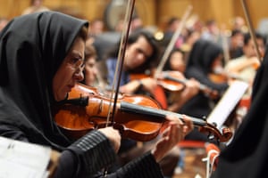 Members of the Tehran Symphony Orchestra in rehearsal. Photograph: Vahid Salemi/AP