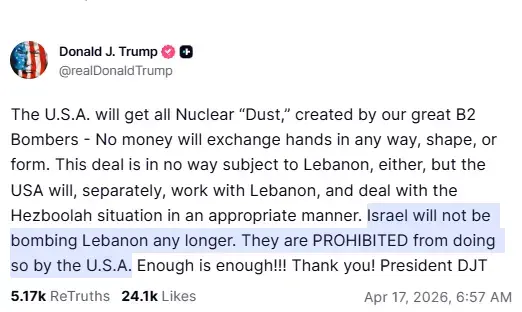 It's as obvious as sunrise that this is what opened it up, there's no way Trump would give a shit about a ceaefire in Lebanon and there's no way there would be one without huge pressure on Netanyahu from Trump and therefore huge pressure on Trump from Iran.