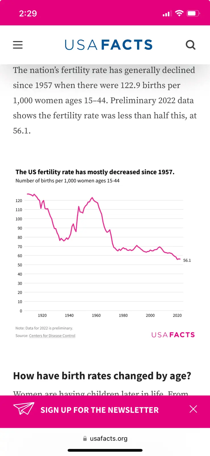 Are we in for another boomer era in the next few decades like a skyrocket in childbirth somehow? Or are we going to continue toward a downward trend with regards to this topic?