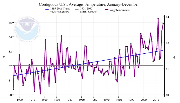 For the last couple of decades since I started seriously studying the climate, I’ve been hearing Americans of all kinds claiming that the United States is suffering terribly from “global warming”. Over and over, from American educators, government officials, and media, the claim is made that the US is heating up fast, and that the dreaded and endlessly warned of US Thermageddon is just around the corner.