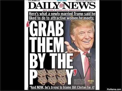 When Donald J Trump did this and said those creepy things like he could grab a strange girl's ***** and get away with it because....yadahdahdah.... And he moved on her and tried to f**k her and she was married but I tried.....