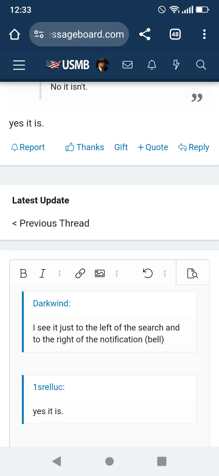 I see it just to the left of the search and to the right of the notification (bell)No it isn't.