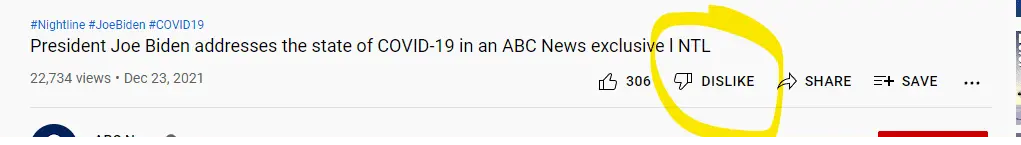 You're a liar.The dislike button works fine for me, even on Biden videos.