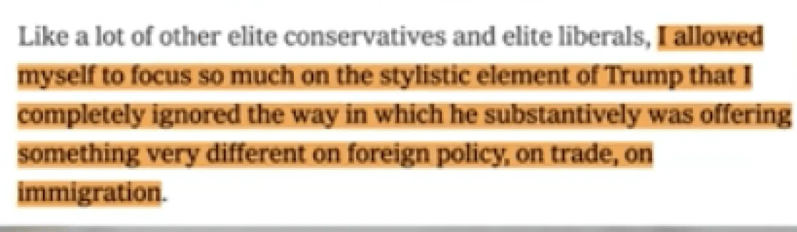 Now Vance pretty well sums up why he changed along with a 100% on target for the cause of Trump's popularity.