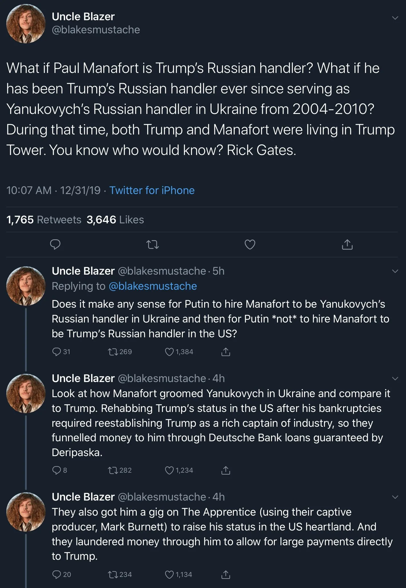 You mean that he is telling him what to do from prison? It would never work you fool a handler has to have access to not only the person he is handling but access to those he is doing the handling for.When did it ever fall on its face?Got to give the halfwits credit. They still try to perpetuate every lie, no matter how many times it falls flat on its faceMods couldn’t wait to get this thread out of sight. Too funny!