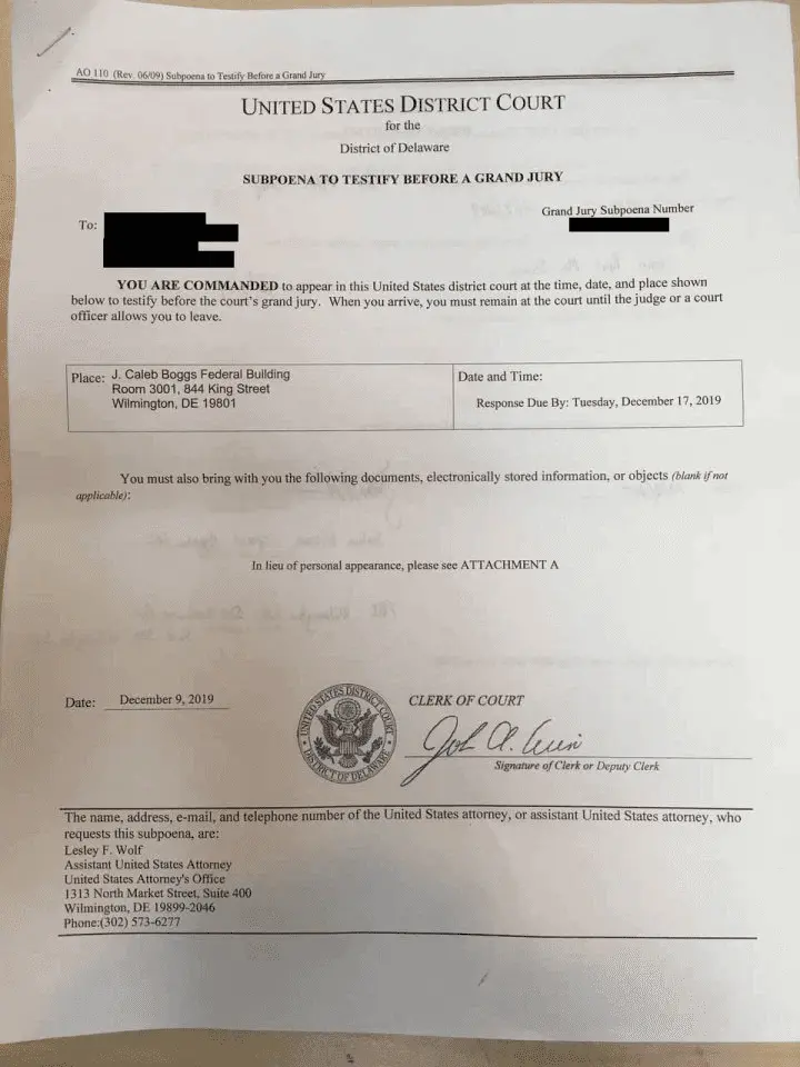 FBI Grand Jury subpoena for Hunter Biden’s laptop.