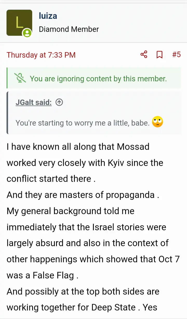Here's another. He/she/it is on ignore. Has been for a long time. It says they're on ignore, but as you can see, I can read their antisemetic nonsense. And no, I didn't click to read. Never have with this person. I wish the software actually worked