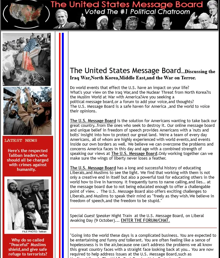 Message Boards & Forums discussing world events,the Iraq War,Muslims,and issues inside our own borders as well.web.archive.org