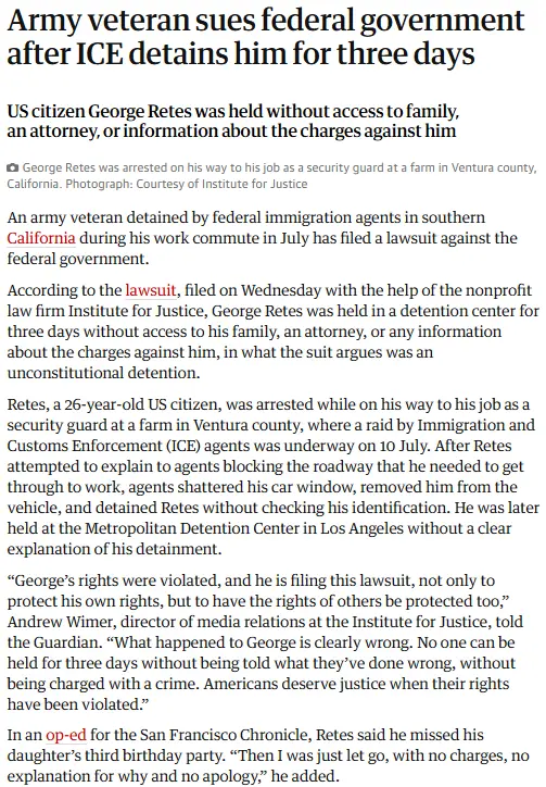 US citizen George Retes was held without access to family, an attorney, or information about the charges against him