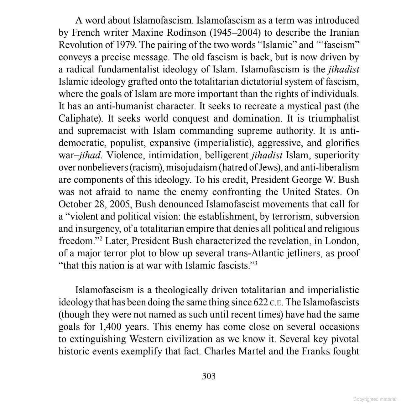 "Islamofascism" is an empty phrase. What to do with this word? The Nazis had not been theologically driven. And "fascism" in general was not anti-Semitic. Only the Nazis had been anti-Semites. "Fascism" is part of the modern Occident. "Islamism" is part of the modern Orient.