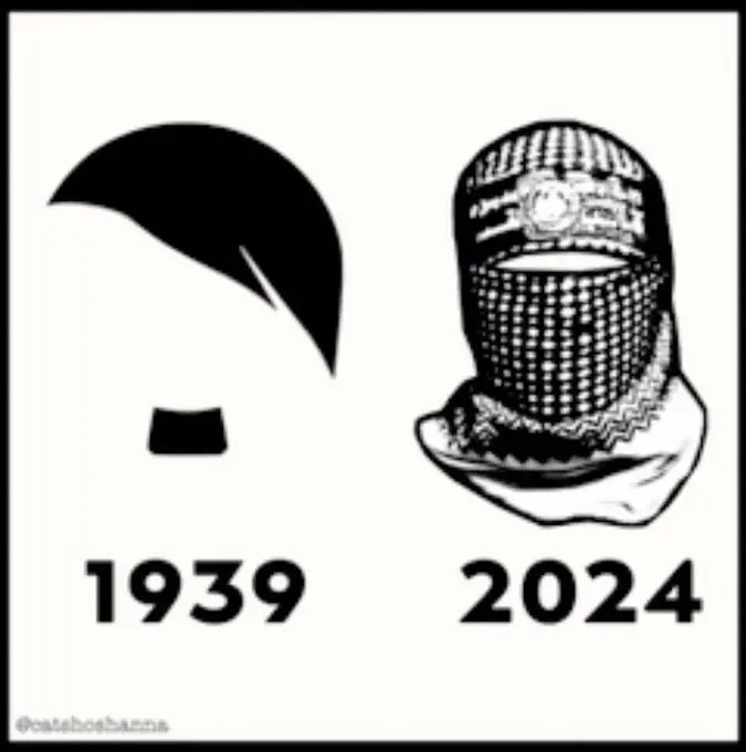 And in Bergenfield, New Jersey, pro-Palestine activists terrorize residential areas and hold up pictures of Hitler. Because anti-Zionism.