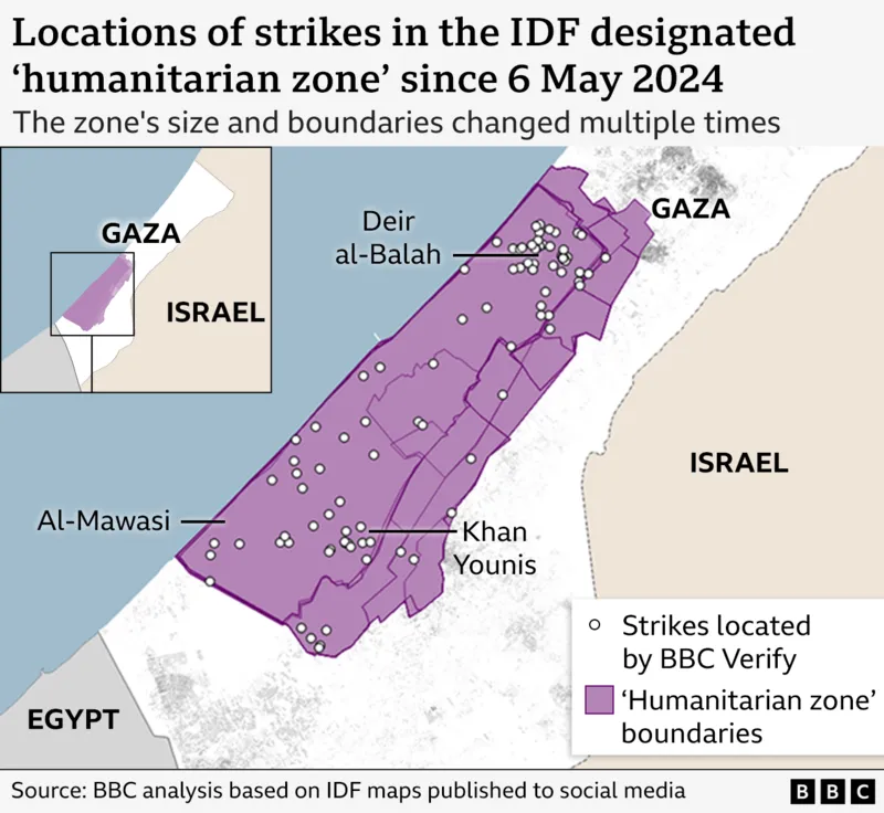 "Gaza 'humanitarian zone' struck almost 100 times since May, BBC Verify finds"